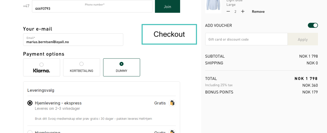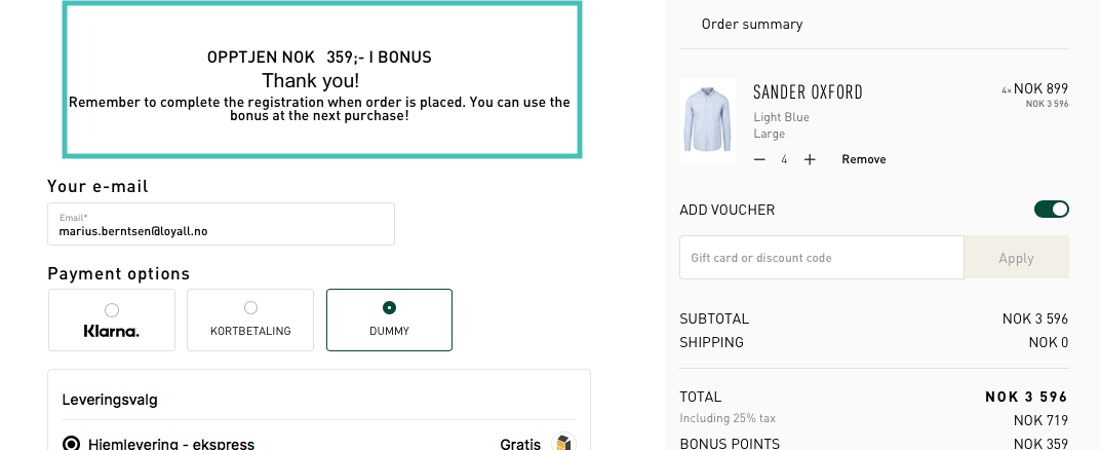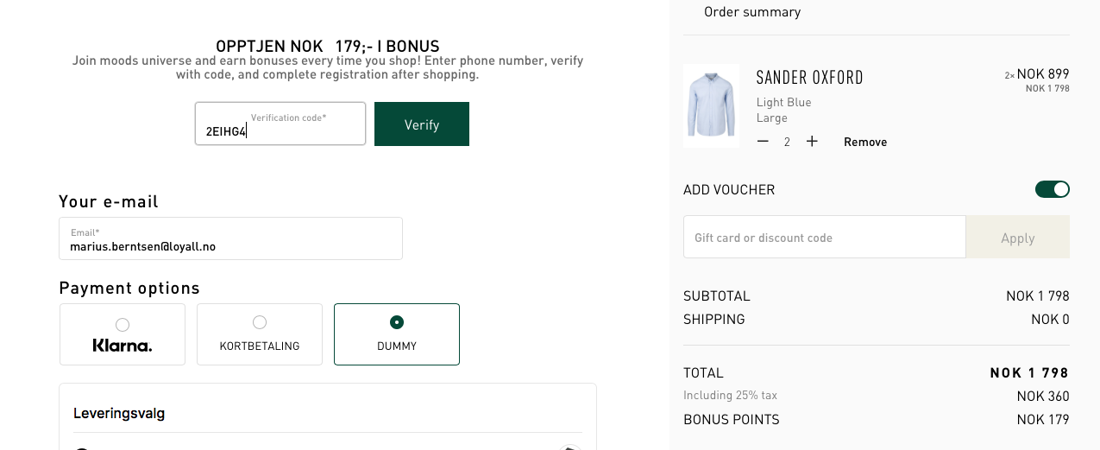 In order to convert as many customers as possible into member profiles, it is important to have a good balance between recruitment incentives and visibility. At the same time as not disturbing the customer during the purchase process. Scroll through the photo library for an illustration of what such a flow should look like: